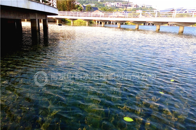 南北水塘水生態(tài)修復(fù)示范項(xiàng)目由南京中科水治理股份有限公司進(jìn)行設(shè)計(jì)施工一體化工程,工程總面積22.8萬(wàn)㎡,平均水深2.2m。南北水塘在修復(fù)前為典型的富營(yíng)養(yǎng)化水體,清水型生態(tài)系統(tǒng)構(gòu)建技術(shù)工程施工后,主要水質(zhì)將達(dá)到地表水環(huán)境治理標(biāo)準(zhǔn)GB3838-2002 Ⅳ類以上,透明度達(dá)到1.5m及以上,且每年不少于300日。