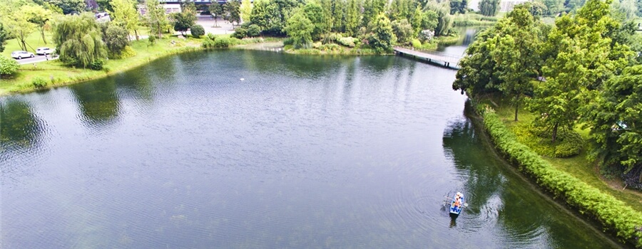 成都華為景觀湖湖面成"葫蘆形",平均水深2m。2016年4月開始施工,現已進入維護調整期。目前水質優于《地表水環境質量標準》GB3838-2002 III類,水體透明度在2m左右。